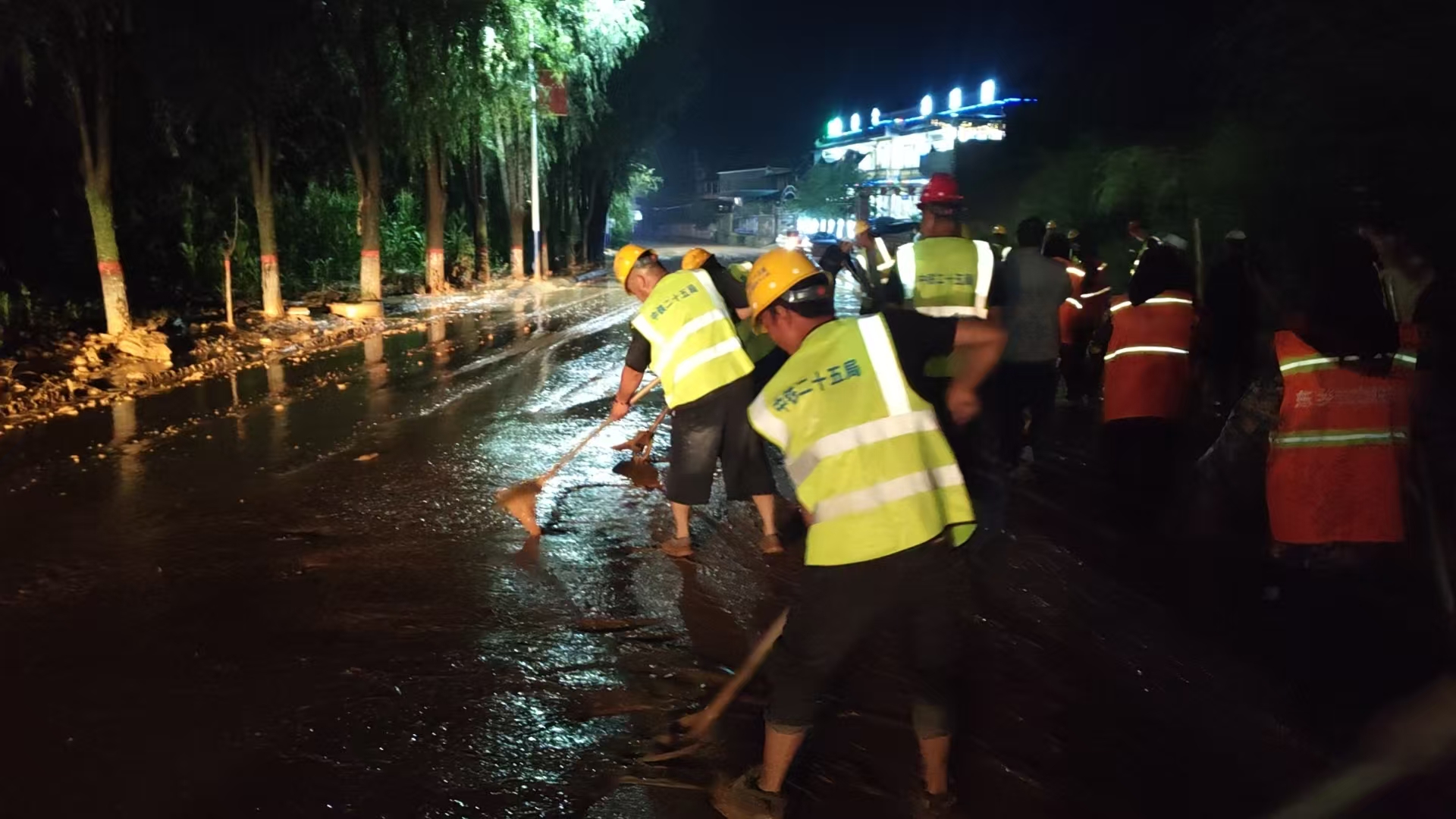 “立即出動搶險(xiǎn)突擊隊(duì),20分鐘內(nèi)抵達(dá)現(xiàn)場!”接到搶險(xiǎn)指令后,集團(tuán)公司所屬蘭永臨高速項(xiàng)目部迅速集結(jié)搶險(xiǎn)人員、機(jī)械操作、應(yīng)急保障等專業(yè)隊(duì)伍30余人,調(diào)配挖掘機(jī)1臺、裝載機(jī)2臺、灑水車3輛,迅速奔赴受困最嚴(yán)重的路段,為村民安全保駕護(hù)航。
