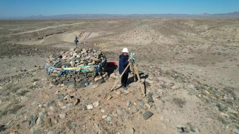 圖為張新在包銀高鐵項(xiàng)目進(jìn)行測量工作(朱仕俊 攝)